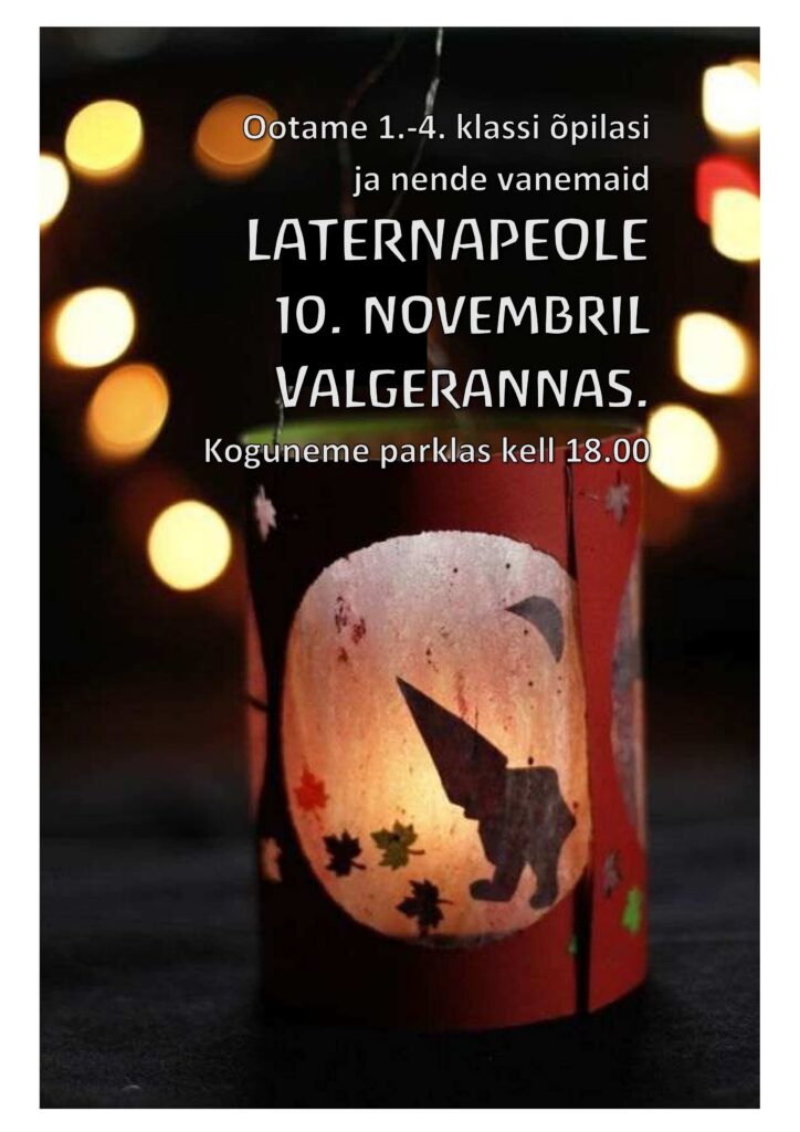 Laternapidu, 10.11.25 kell 18 Valgerannas